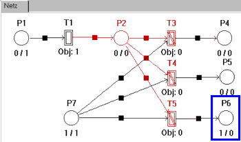 wird per Mausklick ein Token in Platz P1 eingefügt. Bei einem weiteren