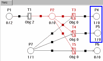 schalten; und nach Ablegen eines Token in P7 alle Transitionen T3 bis T5